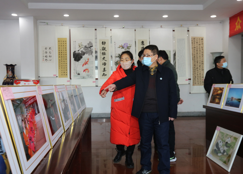 活动现场,观看展览的干部职工络绎不绝,他们有的在驻足欣赏,频频夸赞“这个书画苍劲有力”、“这张照片构图不错”;亦有的拿起手机,记录下自己的作品或作品中的自己。