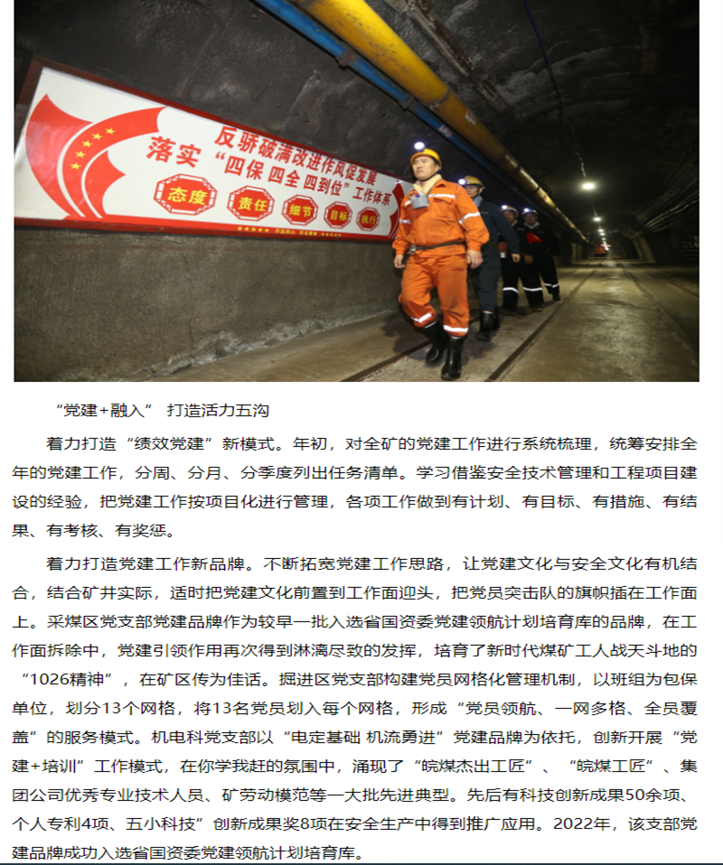 2月2日安徽市场星报、安徽财经网:五沟矿:人机环本聚合力 五大工程党旗红