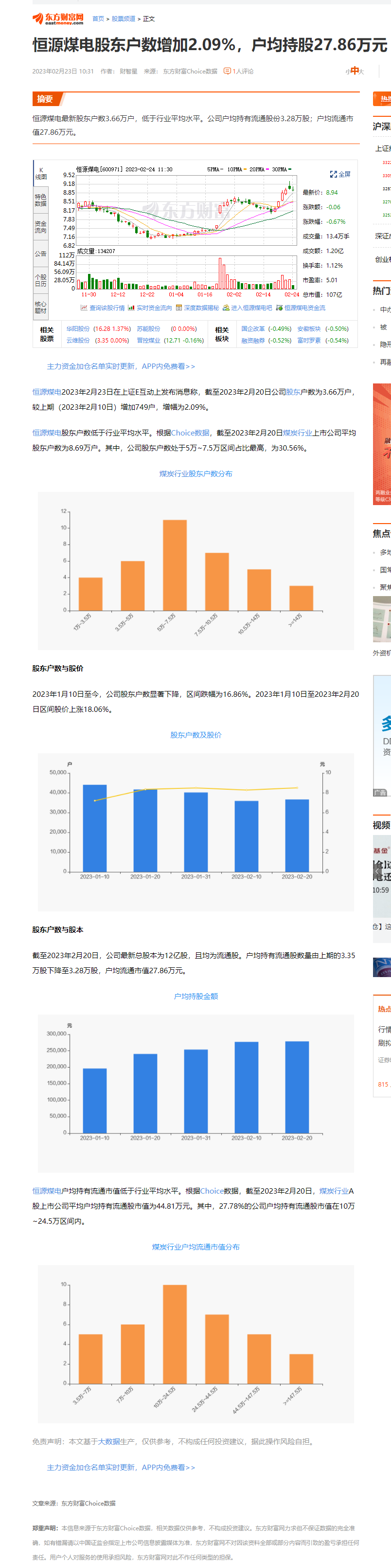 东方财富网:球速体育煤电股东户数增加2.09%,户均持股27.86万元